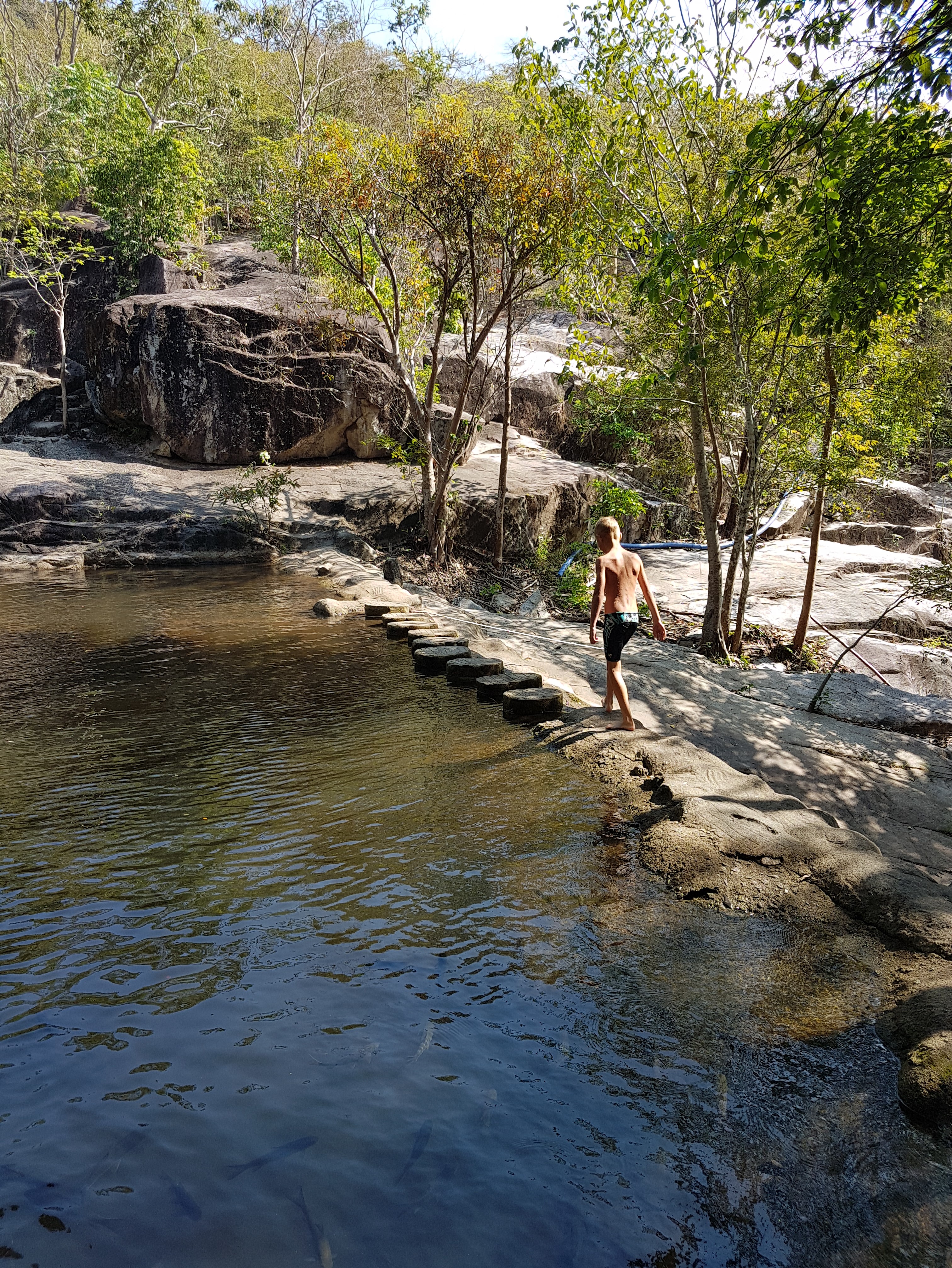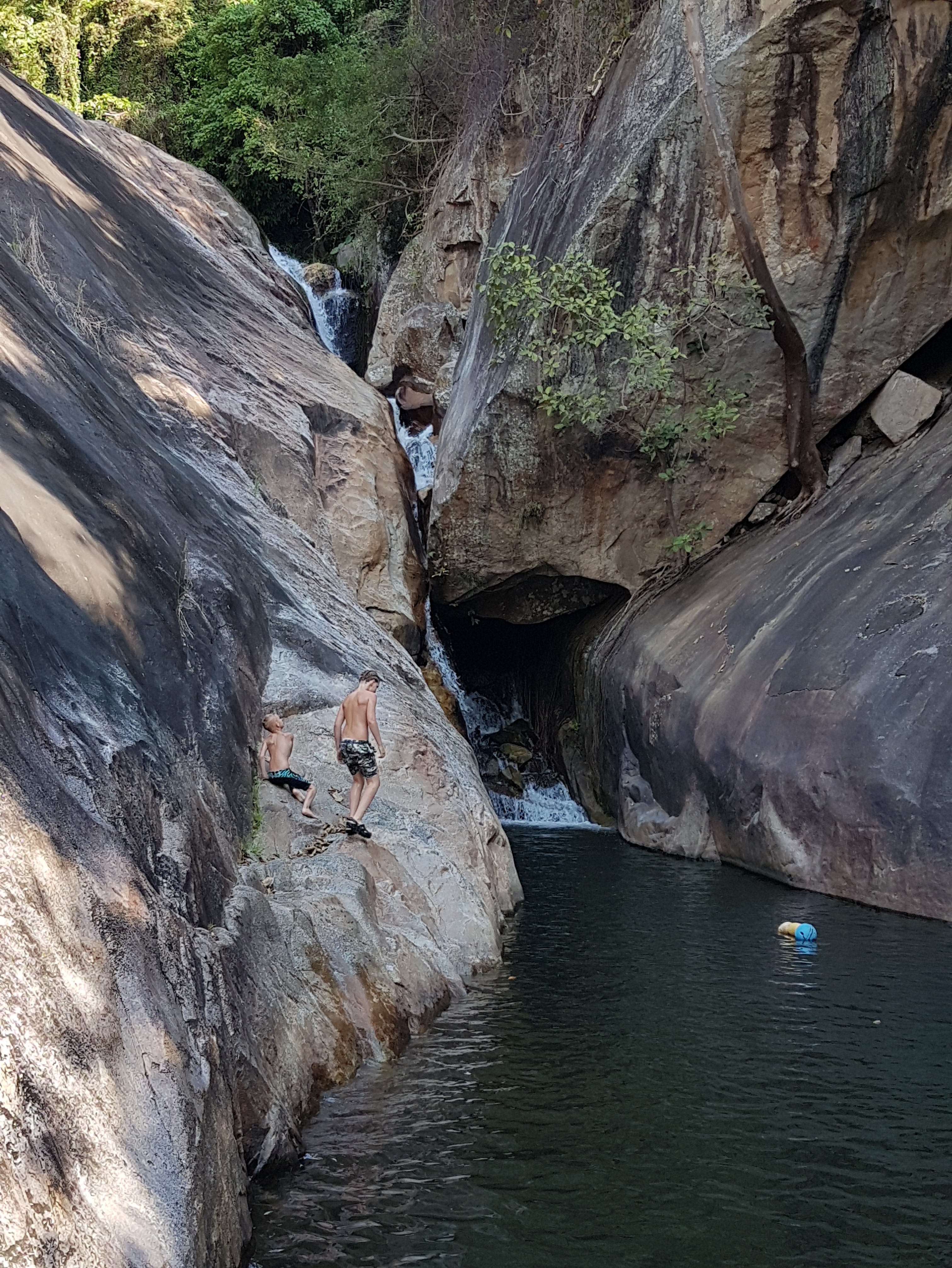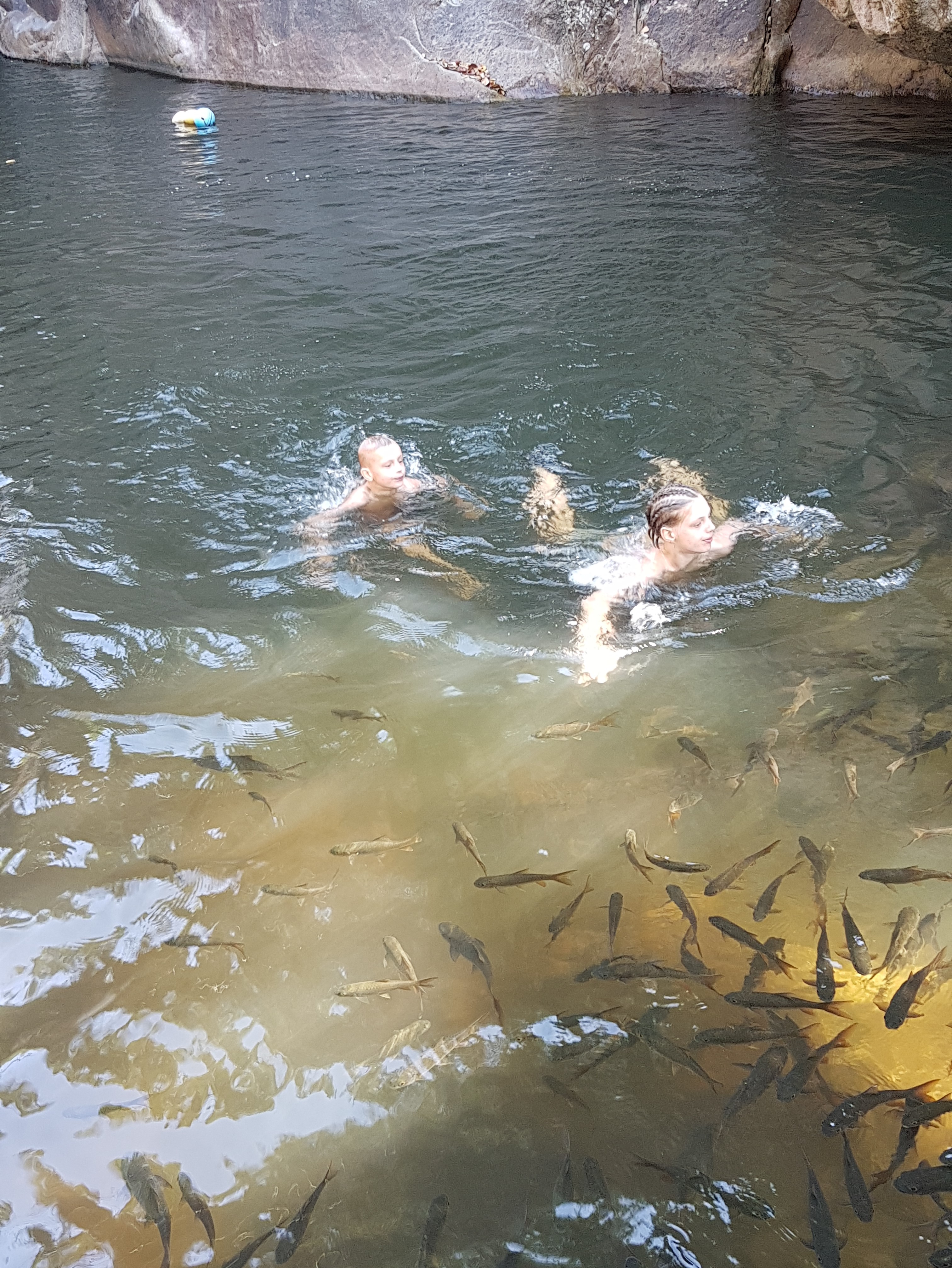 orm i träden, men framförallt bada med fiskarna vid vattenfallen.